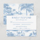 Blue Coastal Toile Wedding RSVP Antwortkarte Karte