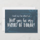 Elegante Trauzeugin in Weiß- und Marineblau für eine Hochzeit nach einem nautischen Thema. Der Hintergrund ist marineblau mit schwachen Bildern eines Kompasses. Die Rückseite weist einen passenden Hintergrund in Weiß auf.