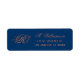 Dieses elegante Adressetikett hat ein verflochtenes Monogramm in Skript-Schriftart in Kupfertönen und Kupferfarben auf marinischem Hintergrund.