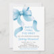 Diese niedliche und skurrile Brautdusche lädt mit einem wasserfarbenen, blauen Coquette-Bogen ein. Der Text kombiniert handgeschriebene Skript- und Serif-Schriftart für ein stilvolles und modernes Aussehen.