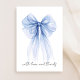 Blue Coquette Bow Watercolor Brautparty Dankeskarte