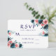 Eine zarte Aquarellillustrierung eines Hochzeitsbukets mit hellblauen, dunkelblauen, korallenfarbenen und hellrosa Blume. Die sanfte Farbpalette und der fließende Aquarellstil schaffen ein romantisches und elegantes Design, das sich perfekt für Hochzeitsmaterial eignet.