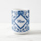 Französisches Design der blauen Hütte Kern-Blume schwebend auf einem weißen Hintergrund, weiß eine diamantförmige Box mit dem Wort Mama.