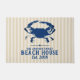 Strandschicke, blaue Krabbendecke mit den Worten "Strandhaus", Familienname und Strandstreifen mit dem besten Datum.