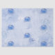 Watercolors in shades of blue form an artistic watery background for the blue crab illustration.