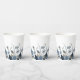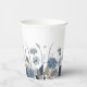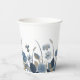 Elegantes Blumengestylt mit blauen und beigen Blume mit hohen Stielen und Blätter auf weißem Hintergrund und schafft ein sanftes, modernes und raffiniertes Aussehen.