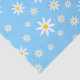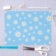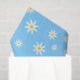 Weiße, dunkle Blume mit gelben Mittelklappen auf blau.