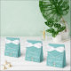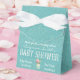 Diese eleganten Blue Damask Gefälligkeitsboxen sind perfekt für jede Babydusche! Ein glänzender, heller blauer Damast-Hintergrund mit einem blauen Band, das "Baby Dusche" sagt.