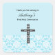 Beenden Sie Ihre Feier mit diesem Dainty Damask Jungs Heilige Kommunion Dankeschön Label. Kann auf Favoriten oder danke Karten verwendet werden. Es hat einen blauen Damast unten mit einem schwarz-weißen Kreuz, Karo aus unseren passenden anderen Produkten wie Einladungen, Dankeschön Notizen, und mehr.