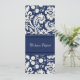 Elopement Ankündigungskarten in elegantem dunkelmarineblau und cremefarben-weißem klassischem Blumendüsternmuster, vollständig anpassbar mit Ihren Namen und Hochzeitsdetails, der perfekte Weg, um Ihre Entfaltung zu Freunden und Familie anzukündigen. Erhältlich in einer breiten Palette von passenden Hochzeitsprodukten.