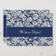 Elopement Ankündigungskarten in elegantem dunkelmarineblau und cremefarben-weißem klassischem Blumendüsternmuster, vollständig anpassbar mit Ihren Namen und Hochzeitsdetails, der perfekte Weg, um Ihre Entfaltung zu Freunden und Familie anzukündigen. Erhältlich in einer breiten Palette von passenden Hochzeitsprodukten.