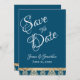 Blue Damask Gold Script Elegante Hochzeit Save The Date