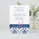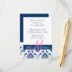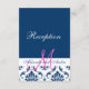 Blue Damask Monogram Wedding Reception Begleitkarte