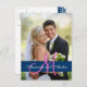 Blue Damask Wedding Foto Danke Postcard Postkarte