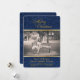 Elegante weihnachtliche Weihnachtsgrüßkarte in blau auf blauem Damast-Muster gemacht, mit Grafiken von elegantem goldenen Text, der frohe Weihnachten liest. Goldene Tongrafik von heilig, am Ende der Karte und ein goldenes gerahmtes Foto-Bereich, in der Mitte. Personalisieren Sie sich mit Ihrem Foto und Text, für eine wirklich schöne Urlaubskarte.