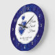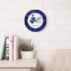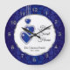 Blue Damask with Hearts - Zuhause Sweet Zuhause Große Wanduhr