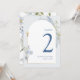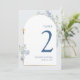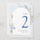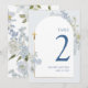 Blue Delphinium Floral Boy Baptism Table Number Einladung
