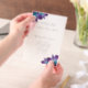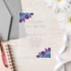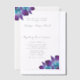 Lila und türkisblaue Dendrobium Orchidee echte Vellum Hochzeit Einladung. Einfaches Hochzeitsdesign aus Vellum, das eine wunderschöne orchide Sorte mit dem Namen blaues Dendrobium aufweist. Es ist aquamarin / türkis in Farbe gepaart mit violett und königlich lila. Eine großartige Blume für Pfauenhochzeit.