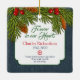Land, rustikal blauer Denim mit Kiefernbäumen, Kegeln und Beeren Denkmal Foto Weihnachtsschmuck (quadratische Form). Die Vorderseite hat ein Foto Ihres Geliebten, das Sie auswechseln können. Der Rücken hat den Namen Ihres geliebten Menschen, Jahre gelebt und ein schönes Vers, das Sie ändern können. Evergreen Zweige mit Kiefernzapfen und Beeren gepaart mit Land oder rustikalen simulierten blauen Denim Hintergrund.