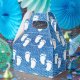 Blaue Babyfüße denim. Niedliches Babyfußdruckmuster. Kästchen für benutzerdefinierte Gefälligkeiten. Hinzufügen von Text oder Bild zum Anpassen. Alles, was gesehen wird, ist bedruckt, kein wirklicher Stoff wird für die Herstellung dieses Produktes verwendet.