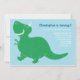 Diese schöne Geburtstagseinladung mit einem glücklichen grünen T-Rex Dinosaurier und einem blauen Hintergrund. Ideal für die Geburtstagsparty eines Jungen.