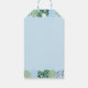 Diese bezaubernden Geburtstagsmarken bieten blaue Dinosaurier mit tropischen Aquarellfarben-Blätter.