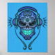 Dieses aufwändige Design des DJ-Zuckerschädels ist mit aufwändigen Wirbel und Punktmustern dekoriert. Kopfhörer sitzen oben auf dem Schädel und zwei Drähte hängen darunter. Ein Schatten fällt auf den runden Meshhintergrund, sodass es so aussieht, als würde der Schädel gerade über der Oberfläche schweben. Dieser aggressive Tag der Toten inspirierte ist perfekt für Musiker und Musikliebhaber.