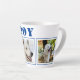 Niedlicher blauer Hund 3 Foto Collage mit Name Latte Tasse. Name des Tieres in blauer Farbe und 3 Fotos in Blueframes. Fügen Sie 3 Fotos und einen Namen hinzu.