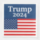 Diese Servietten des Präsidentschaftswahlkampfs von Donald Trump 2024 weisen einen marineblauen Hintergrund mit der Phrase "Trump 2024" auf, die in weißem, klassischem Schriftart gedruckt wurde. Im unteren Teil befindet sich ein Bild der amerikanischen Flagge. Zeigen Sie Ihre Unterstützung für die Wiederwahl von Donald Trump zum Präsidenten bei den US-Wahlen 2024.