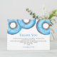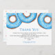 Vielen Dank an Familie und Freunde für ihre Geschenke für das Baby Sprinkle Ihres Jungen mit dieser niedlichen Dankeschön-Karte. Es zeichnet sich durch Aquarellblauen Donuts und stilvolle Typografie aus. Die Rückseite ist mit bunten Sprinklen geschmückt. Einfach anpassbar. Original Wasserfarbe © Michele Davies.