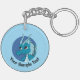 Akryllischer Schlüsselanhänger mit Illustration des niedlichen blauen Drachenmädchens / Märchendesign für Kinder in blauen Kreisen , Kinderdesign von Maxi Harmony,