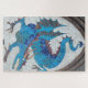 Ein blauer Drache krabbelt unter einem Puzzle aus Arschgeflecht