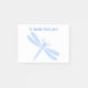 Hübsch post it note pad getan in Weiß, mit Grafik eines blauen Libellen. Personalisieren Sie den benutzerdefinierten blauen Text oben auf dem Pad, um Ihre Bedürfnisse zu Anzug.