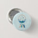 Button mit einem hübschen Aquarellbagger. Blau, Türkis und Creme. Dekoriert mit Federn, Perlen und Blume.