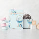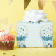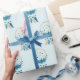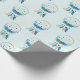 Umhüllungspapier mit einem hübschen Aquarellträumer. Blau, Türkis und Creme. Dekoriert mit Federn, Perlen und Blume.