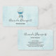 Visitenkarten mit einem hübschen Aquarellträumer. Blau, Türkis und Creme. Dekoriert mit Federn, Perlen und Blume.