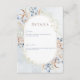 Diese Hochzeitsdetails sind in einem Rahmen aus Bräune, Hellgrün und blau getrockneten Blume mit blauem Aquarellhintergrund gestaltet. Die Rückseite ist ein schönes Aquarellblau-Waschbecken. Diese Karte ist Teil der Blue Dried Boho Blume Suite von Karten erstellt von Simply Farmhouse Press.