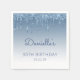 Diese schicken, femininen dreißigsten (oder jedes Jahr) Geburtstagsparty-Servietten verfügen über einen funkelnd blauen Imitat Glitzer Tropfen-Rand und blauen ombre Hintergrund. Personalisieren Sie sie mit dem Ehrengast in blauer Handschrift, mit ihrem Geburtstag und Datum unten in Sans Serif Schriftart.