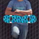 Auf blauem Hintergrund abgebildet sind musikalische Noten