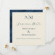 Schöne Braut & Bräutigam Monogramme am oberen Ende dieser schönen Hochzeit Speichern Sie die Date-Karte. Ecru Hintergrund mit tiefblauem Schriftart zu koordinieren mit dem bedrückten blauen Rücken dieser eleganten Einladung. Absolut atemberaubend.