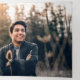 Blue Edgy Abstrakt Brushstroke Foto Abschluss Dreifach Gefaltete Einladung
