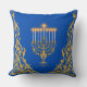 Blue Elegant Monogram Hanukkah Golden Menorah Kissen