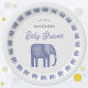 Das niedliche blaue Aquarell-Elefantendesign eignet sich perfekt für die Babydusche eines Tierliebhabers. Sie können dieses Design ganz nach Ihren Wünschen anpassen, indem Sie den Text ändern. Originelle Kunst von Nic Squirrell.