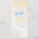 Present your party treats in style with this charming baby shower menu card. A sweet watercolor elephant swinging on a fluffy cloud beneath golden stars creates a dreamy nursery sky scene. Perfect for displaying food and dessert options while adding a soft, magical touch to your baby boy celebration.