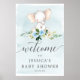 Blue Elephant Boy Baby Dusche Begrüßungszeichen Poster