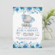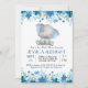 Blauer Elefant Blüteneinladung für eine Babydusche oder Sprinkle.