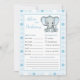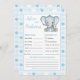 Blue white polka dot Elephant Baby Advice and Prediction card. Fügen Sie Ihre Vorhersagen über das neue Baby hinzu und verließ Ihre besten Wünsche.