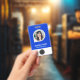 Blue Employee Foto ID Card, Bar Code, Logo, Name Ausweis