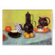 Still Life: Blue Enamel Coffeepot, Earthenware and Fruit von Vincent van Gogh ist ein Vintages Kunstwerk, das noch heute ein Post-Impressionismus mit Kaffeekanne, Teebechern, Orangen und Äpfeln und anderen Hausküchenartikeln im Alltag darstellt. Über den Künstler: Vincent Willem van Gogh war ein postimpressionistischer Maler, dessen Werk durch seine raue Schönheit, emotionale Ehrlichkeit und seine kühne Farbe besonders bemerkenswert war.