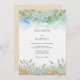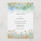 A dreamy watercolor wash of blues and greens evokes a soft, artistic mood. Delicate flora and wispy grasses bloom across the top and bottom edges. This design suggests a romantic and nature-inspired celebration.